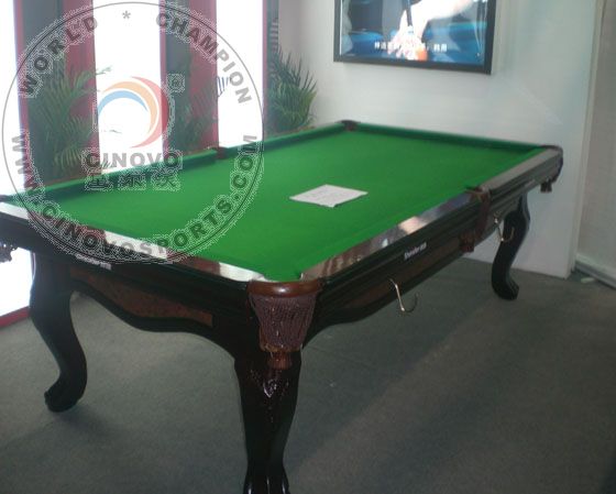 Model No.: DS-22A Table Size: 2270X1270X800MM-- (7FT) 2520X1400X810MM-- (8FT) 2830X1550X810MM --(9FT) Materials: Solid Wood with Natural Slate Includes: Table Frames, Rails, Natural Slate (95''x51''x1''), Table Cloth (65% wool & 35% nylon) Real Leather Pokets. Accessories: 2pcs of Cues, 1 set of billiard ball, rail brush, triangle rack, chalks and etc N.W/G.W: 560kgs/555kgs Packing Number : 35sets/20ft CTN, 56sets/40' GP |