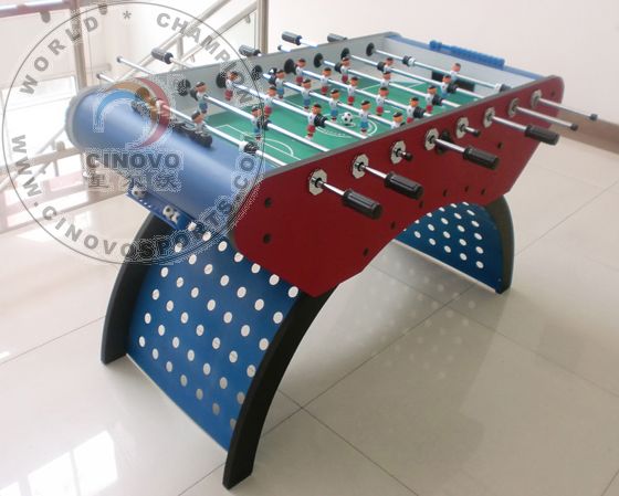 | Introduction: Model No.: CRV-007T Table Size: 1400 x 750 x 880MM Playing Field: 1180 x 670 x 108MM Players: 5:3:2:1 Materials: MDF with PVC Legs: 127mm Square legs with 4PCS of 125mm metal levelers Rods: 15.70mm solid steel rods Accessories: four soccer balls, scorer, bearing Ctn Size: 1410 x 840 x 185MM N.W/G.W: 62/65KGS Q’TY: 180PCS/20ft CTN, 260PCS/40 GP |