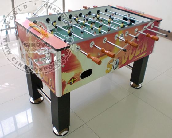 | Introduction: Model No.: CRV-003T Table Size: 1400 x 750 x 880MM Playing Field: 1180 x 670 x 108MM Players: 5:3:2:1 Materials: MDF with PVC Legs: 127mm Square legs with 4PCS of 125mm metal levelers Rods: 15.70mm solid steel rods Accessories: four soccer balls, scorer, bearing Ctn Size: 1410 x 840 x 185MM N.W/G.W: 62/65KGS Q’TY: 180PCS/20ft CTN, 260PCS/40 GP |