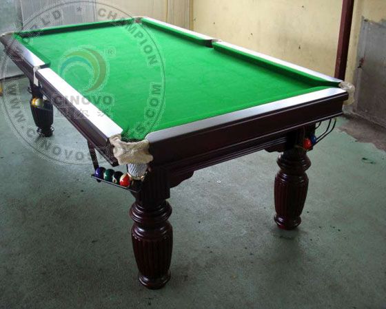 | Introduction: Model No.: H-612 Table Size: 2960*1720*820MM Playing Field: 2540*1270MM Materials: Solid Wood with Natural Slate Includes: Table Frames, Rails, Natural Slate (95''x51''x1''), Table Cloth (65% wool & 35% nylon) Real Leather Pokets. Accessories: 2pcs of Cues, 1 set of billiard ball, rail brush, triangle rack, chalks and etc N.W/G.W: 560kgs/555kgs Packing Numbeer : 35sets/20ft CTN, 56sets/40' GP |