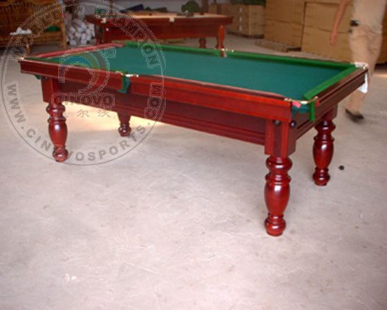 | Introduction: Model No.: H-608 Table Size: 2960*1720*820MM Playing Field: 2540*1270MM Materials: Solid Wood with Natural Slate Includes: Table Frames, Rails, Natural Slate (95''x51''x1''), Table Cloth (65% wool & 35% nylon) Real Leather Pokets. Accessories: 2pcs of Cues, 1 set of billiard ball, rail brush, triangle rack, chalks and etc N.W/G.W: 560kgs/555kgs Packing Numbeer : 35sets/20ft CTN, 56sets/40' GP |
