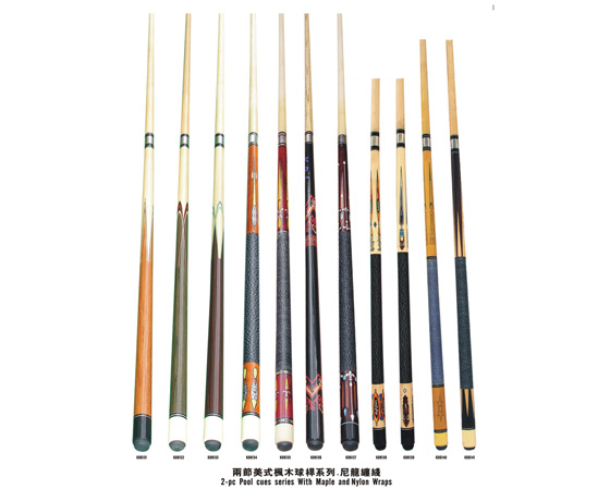 Two-pc Pool Cues Series with Maple and Nylon Wraps