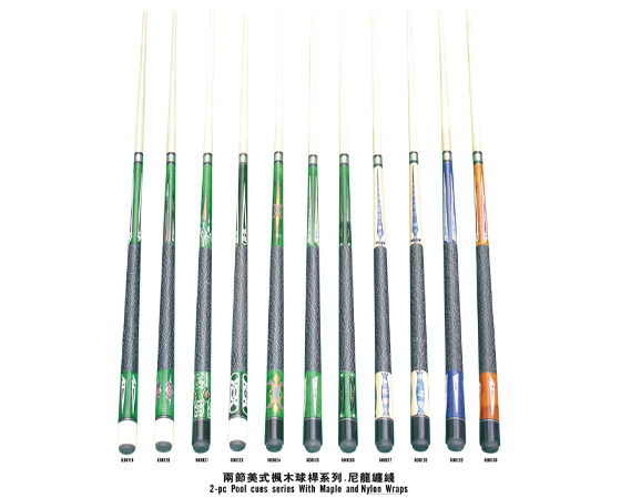 Two-pc Pool Cues Series with Maple and Nylon Wraps